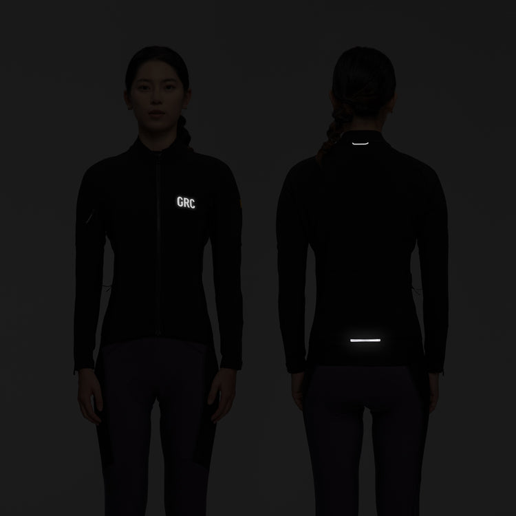 The Women's Research Double-Layer Windproof Jacket features a three-layer windproof fabric, dual-layer Merino wool insulation, hidden reflective cord details, a 3D reflective logo, and a multi-functional pocket design with 8 storage compartments.